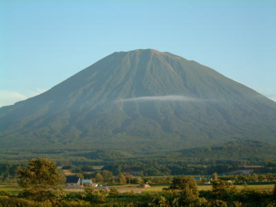 夕日に少し染まる羊蹄山