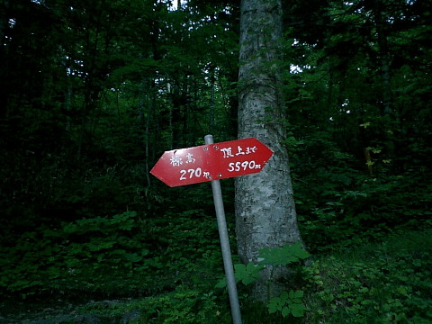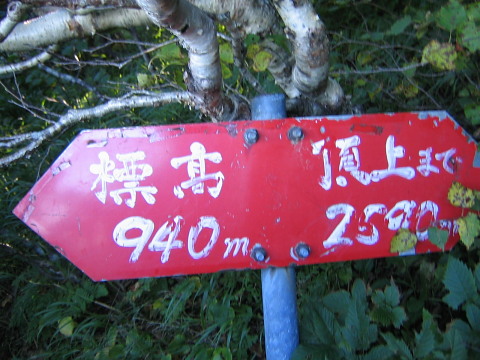 7:38 途中に標高940m、山頂2690mの看板があります。まだまだですね〜