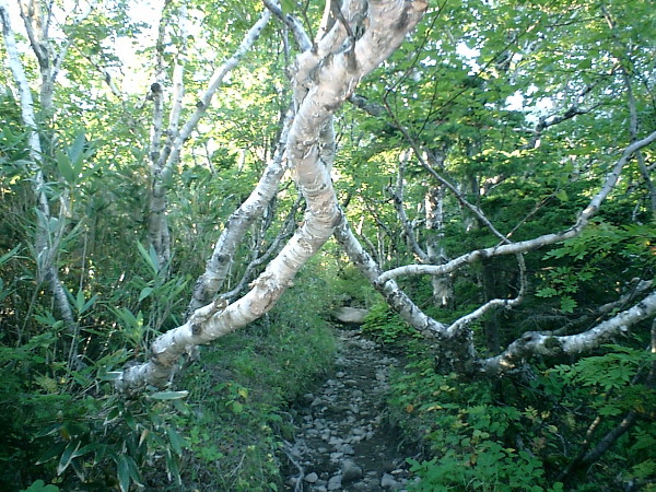 ダケカンバのトンネルは身長180cmの私にはキツイです。