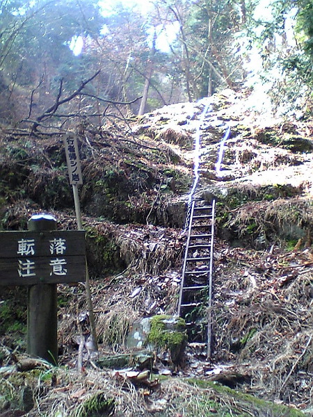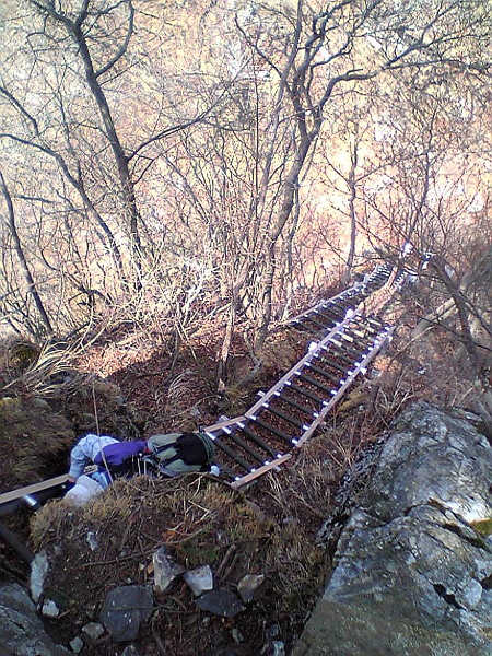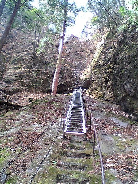 10:48、奥の院に登る梯子。アルミ製でしっかりしています。