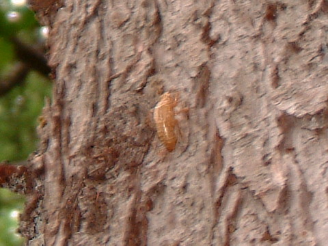 8:32 セミの抜け殻です。森はセミの合唱で夏を感じました。