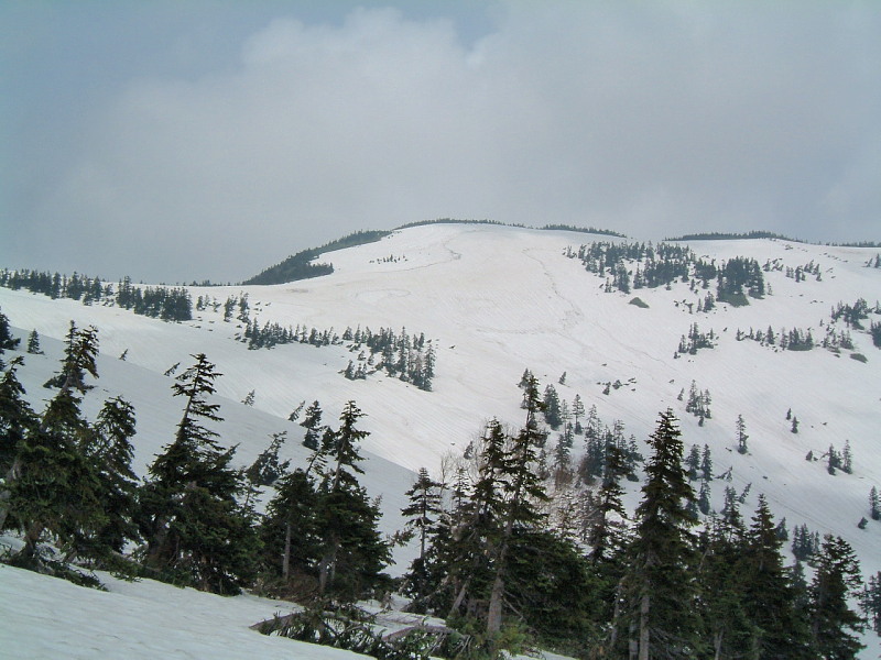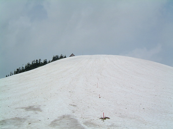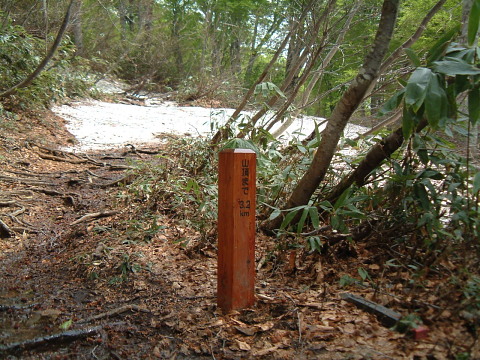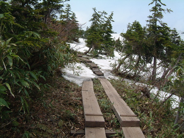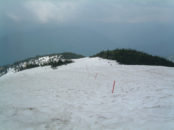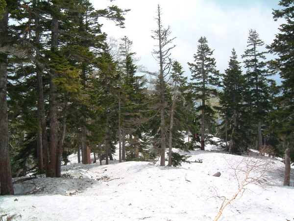 足元は残雪です。水場の分岐から先は、ほとんど残雪でした。