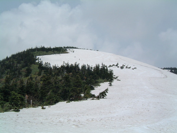 山頂から中門岳方面に少し行った所。快晴なら絶景が広がっている・・・はずです。