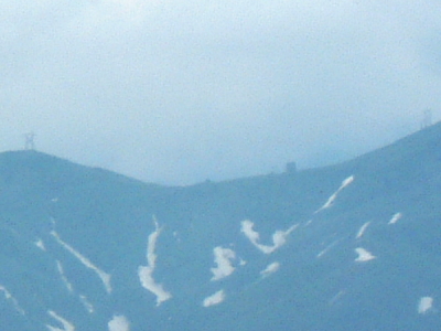 写真は清水峠方面。鉄塔と小屋が見えます。