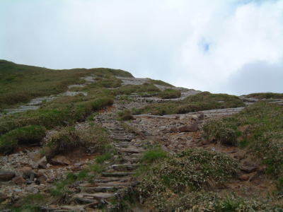14:34 8合目。この階段を見たら座り込み数分休憩。