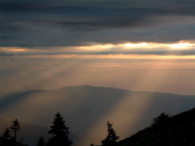 雲の間から日の光が・・・夕陽が見えたら山頂へ行ったのに・・・