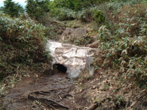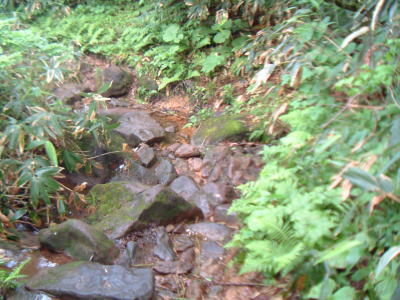 湿気の多い道との情報がありましたが、前日に雨が降ったのか水が流れていました。