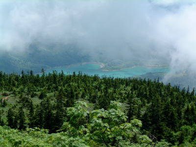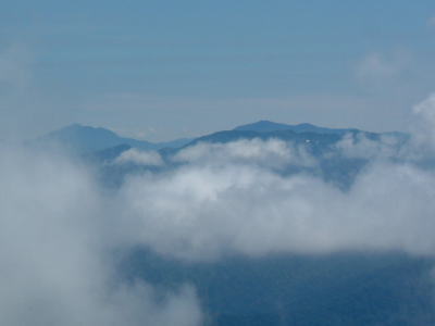 左の写真は苗場スキー場方面。奥の山は・・・?