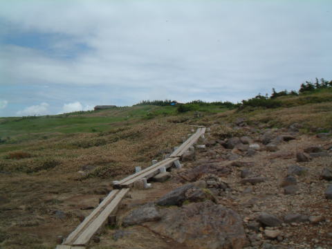 9:37 下ノ芝。湿原には木道が整備されています。休憩もできます。