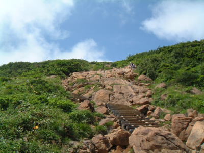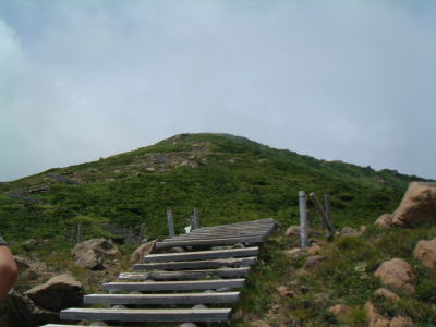 山の鼻まで木道は続きます。これを登るのも疲れそう・・・