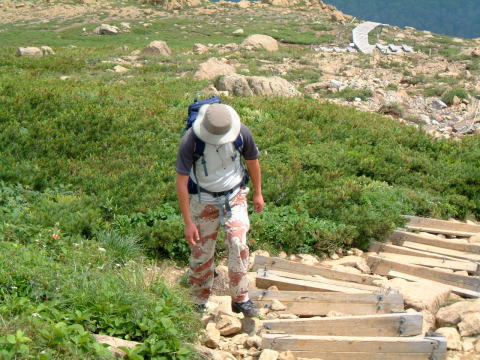 この辺りが高天ヶ原なのか?木道と階段が続いています。