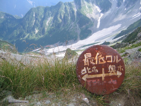 鎖、梯子が続くポイントの手前で涸沢岳からの団体が降下してきたので大休止。