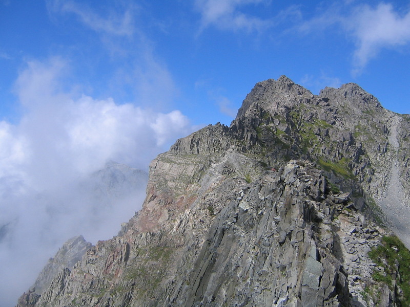 北穂高岳から穂高岳山荘まで。今日の核心部です。