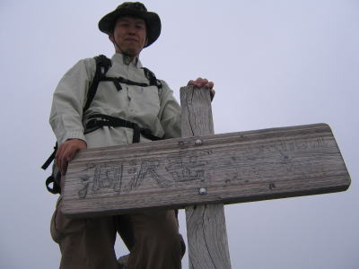 15:30 涸沢岳山頂。ガスガスで展望なしでした。