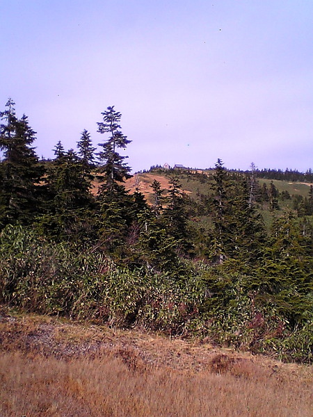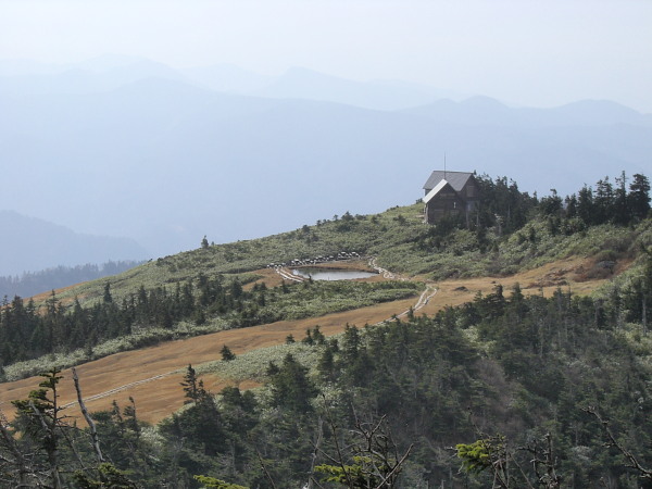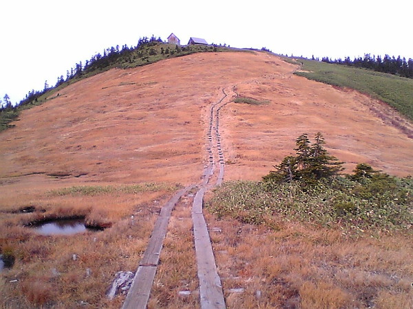 9:45〜9:50 駒の小屋まであと少しの場所から小屋や山頂を望む。