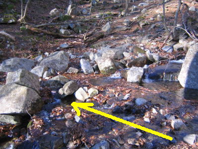 8:46 この標識のある所で一旦、沢から少し離れます。