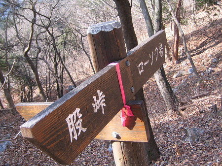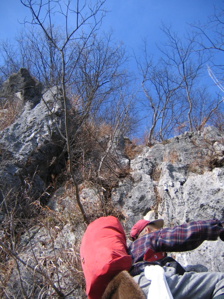 この付近から、岩登りのわき道があります。
