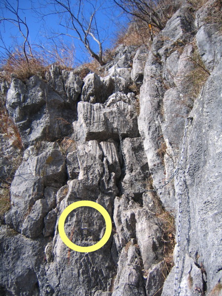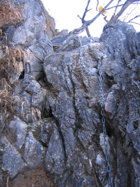 下から見た鎖場。