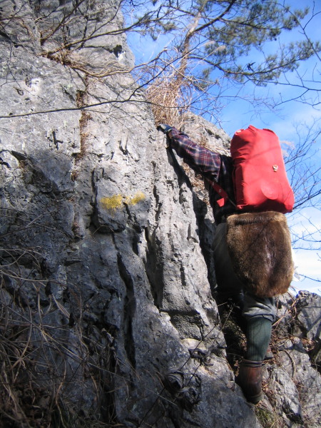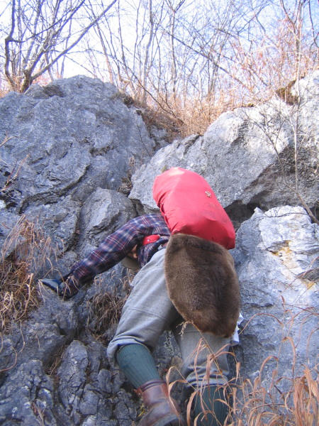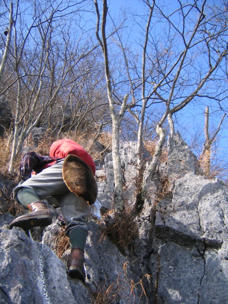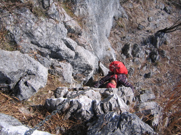 この山は石灰岩なので雨による侵食が激しく手袋が必要かと。