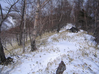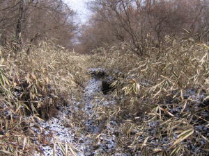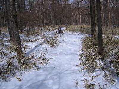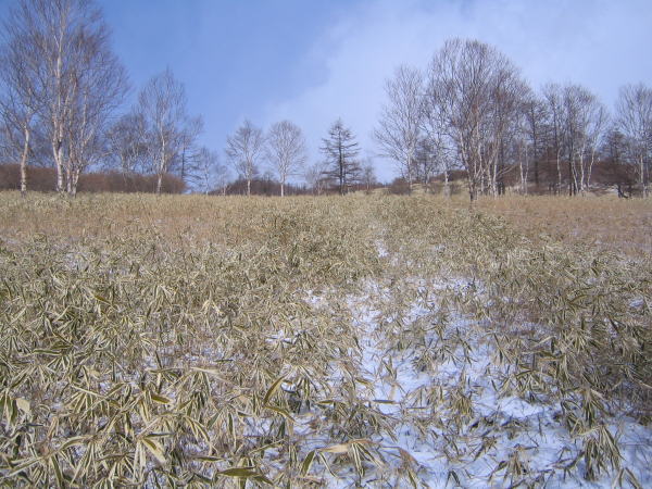 13:12 笹原に戻ってきました。朝は雪があったのに・・・