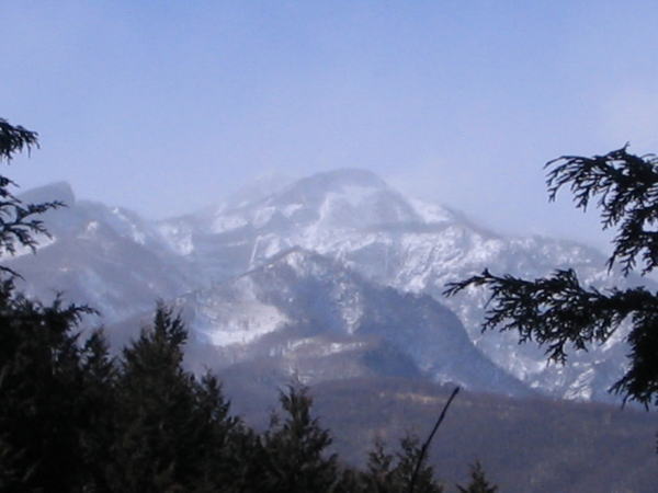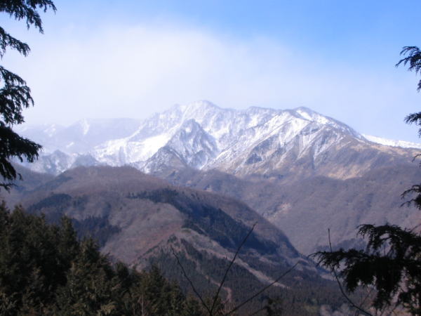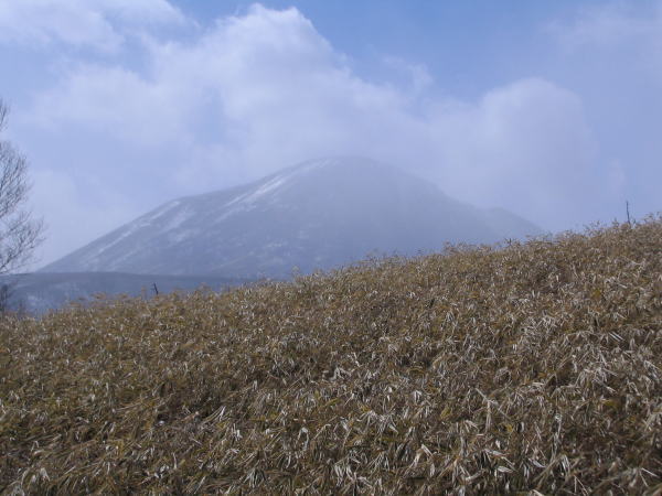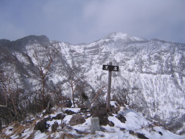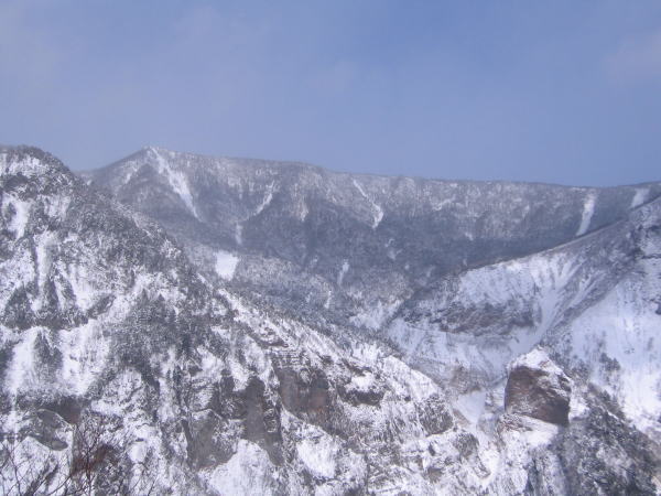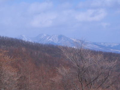 13:20 水場付近から高原山。あちらも白く雪化粧しています。