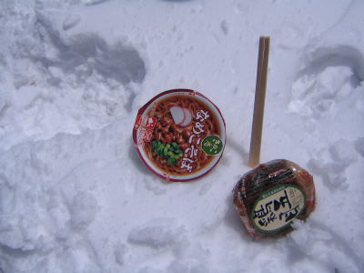 10分も手袋を外すと手が冷たくて大変。カップラーメンで暖を取りながら休憩です。