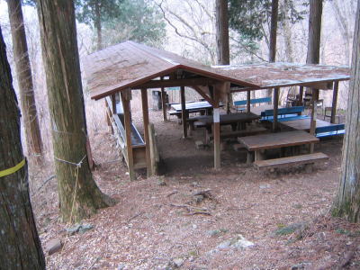 清滝小屋の休憩スペース。水場・トイレもあります。