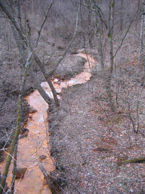7:33 赤茶けた川。鉄分が多いんでしょうね。