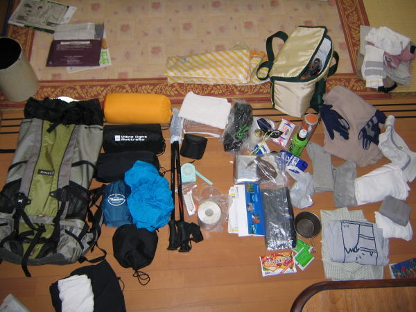 これだけの物を35−45Lのリュックに詰めましたよ。