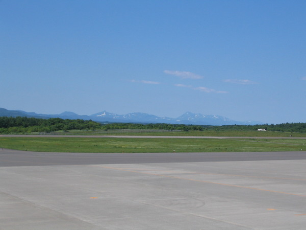 13:10 根室中標津空港からの眺め。羅臼岳がバッチリ見えています。