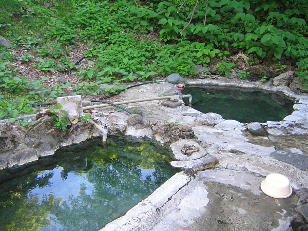 17:27 木下小屋の露天風呂です。奥がぬるめ、手前が丁度いい湯加減です。