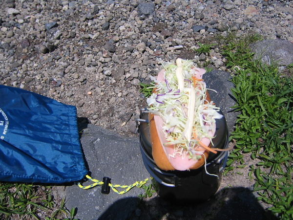 11:20〜12:00 羅臼平で昼食。パンにハムと野菜を挟みました。