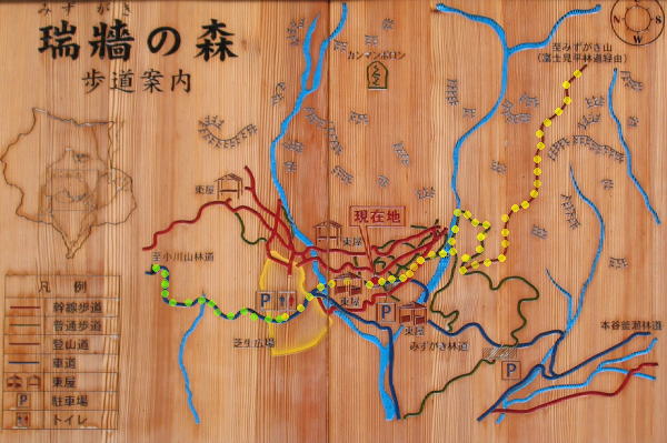 山梨県 みずがき山自然公園芝生広場−不動滝−瑞牆山−富士見平小屋−芝生広場 |