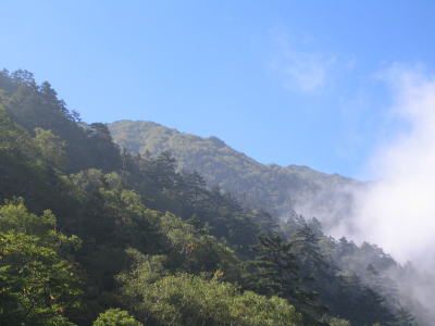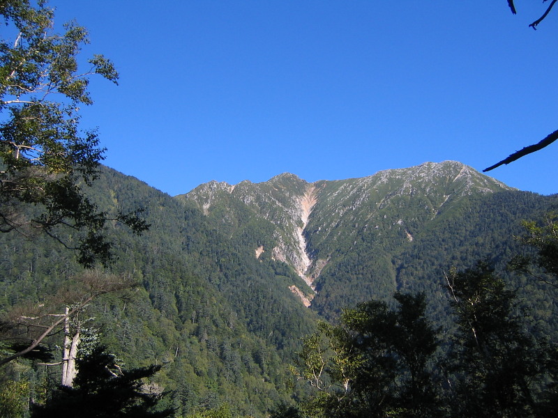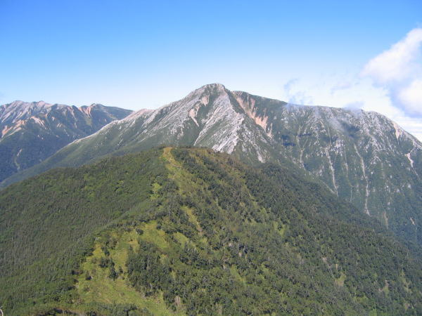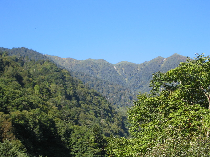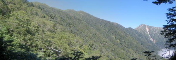 9:30 蝶沢付近から稜線を見たところ。奥は常念岳。