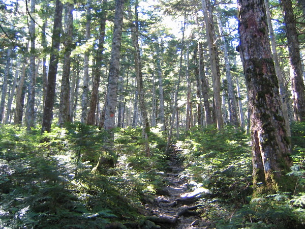 頭の中で、コースタイムどおりなら山頂に12:30、休憩して16:30頃には三股に戻れると計算。
