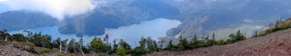 山頂から他の山々が見えないので中禅寺湖と戦場ヶ原