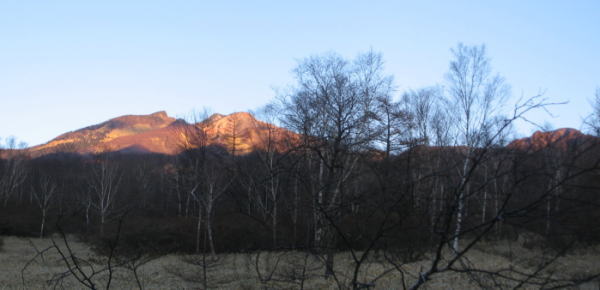 朝焼けの女峰山。正直、「遠いな〜」が感想です。