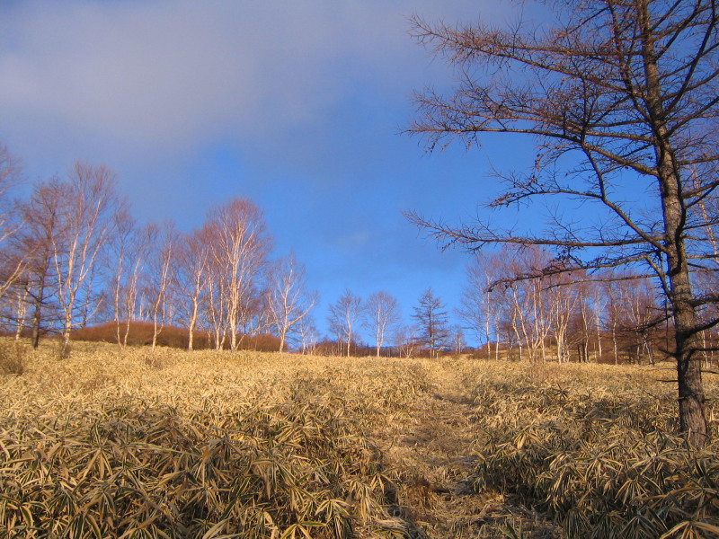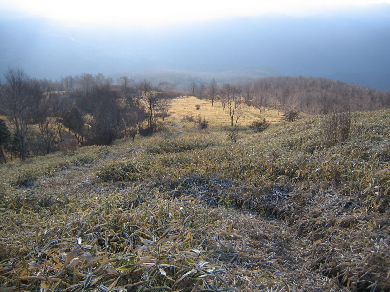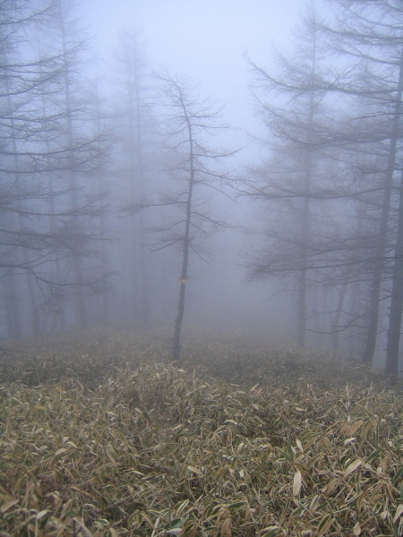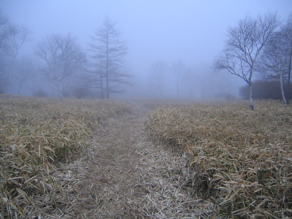 14:52 気持ちのいい笹原もガスガスで男体山などの山々は見えませんでした。