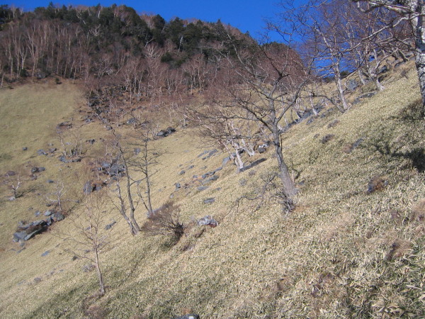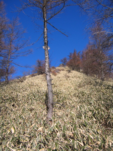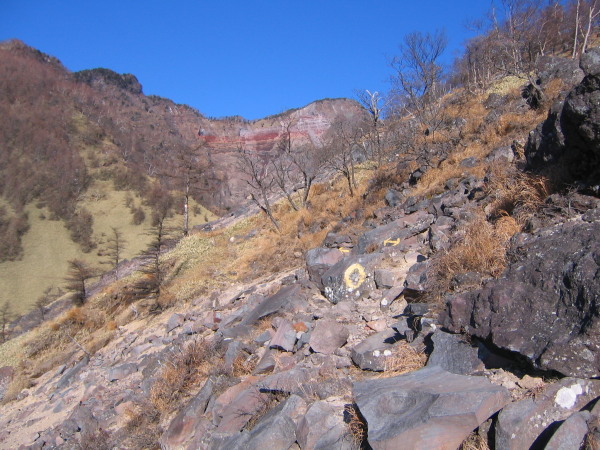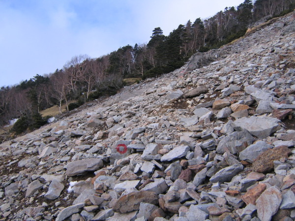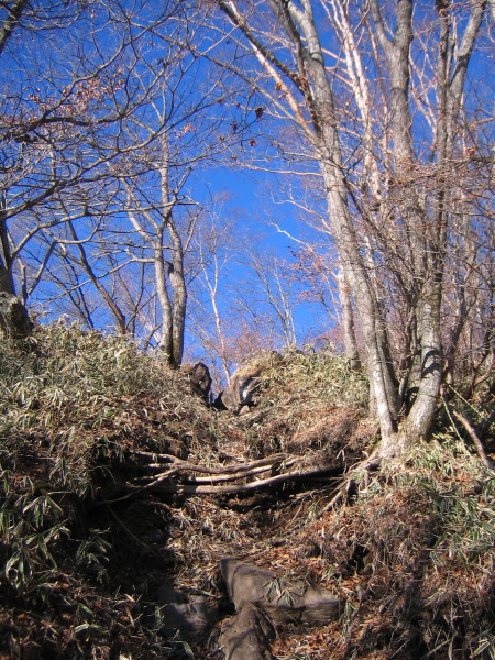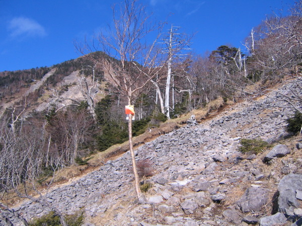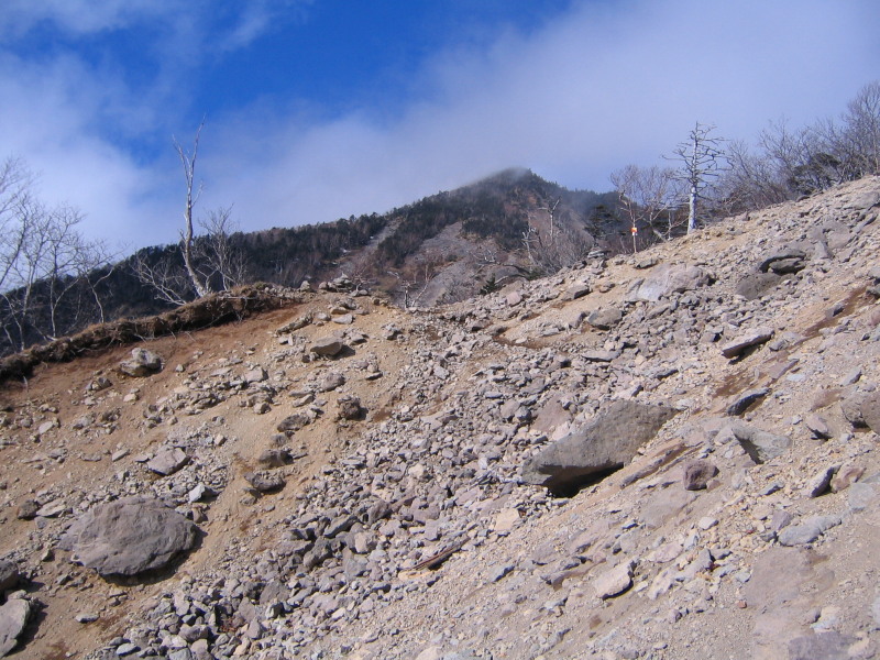 ここも足元注意、落石注意です。ガレ場を過ぎると急坂になります。