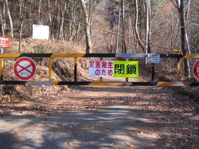 丸川峠分岐駐車場から先の町道は上日川峠まで災害の為通行止めでした。(2007年12月6日現在)