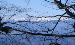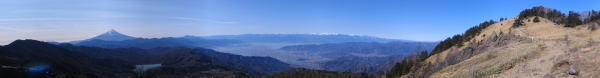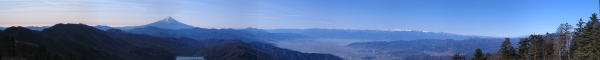 葉が落ちているので木々の間から富士山や南アルプスが見えます。