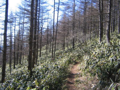 樹林帯を登り熊沢山を巻くように進むと・・・
