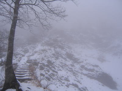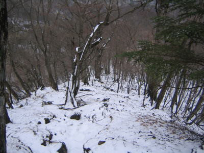 9:55 ガレ場。鎖がありますが、雪で・・・