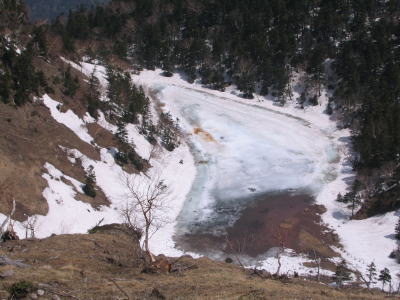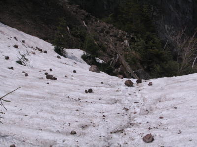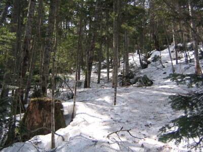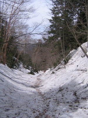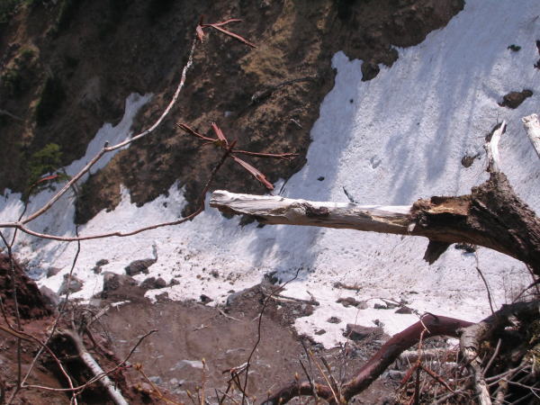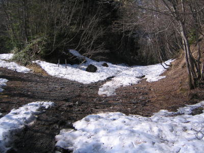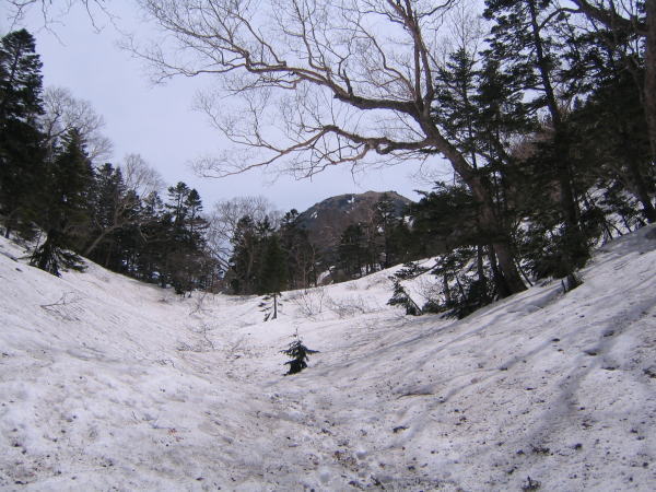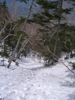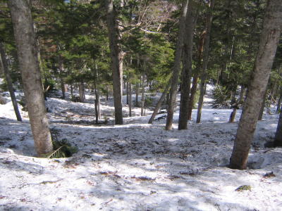 単独。残雪期だけ歩ける谷筋を下山しました。 |