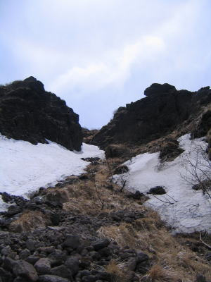 ガレ場の登りは雪解けで足元が悪く滑落注意でした。