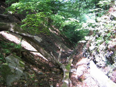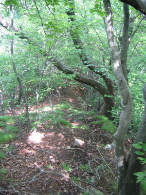 ここで道が・・・慎重に踏み跡を探してルートに復帰。