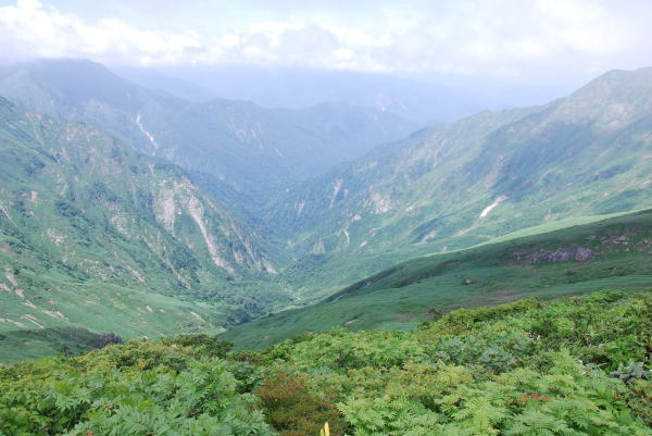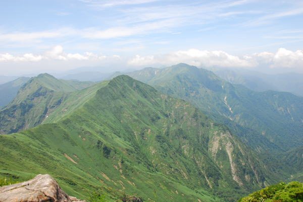 9:25 朝日岳から白毛門。