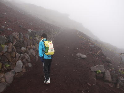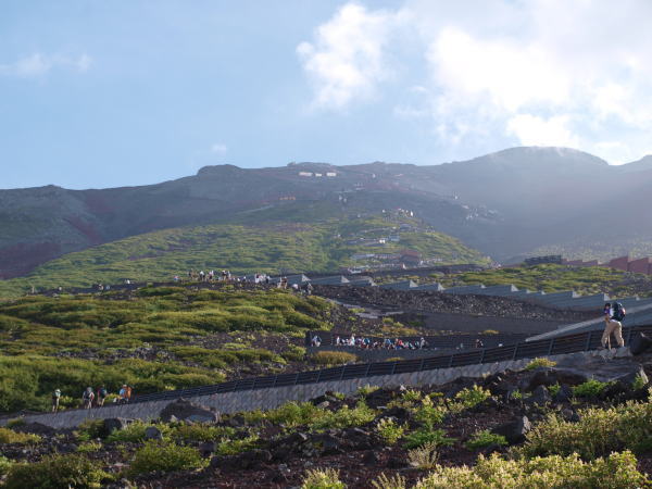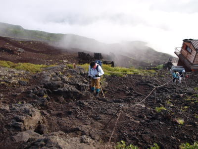 砂礫のつづら折の道は七合目の公衆トイレまで続きます。