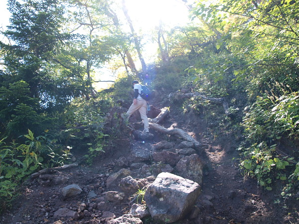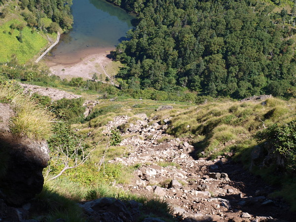 12:06 見上げると急な斜面です。道はつづら折りに付いてます。。