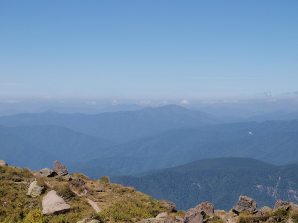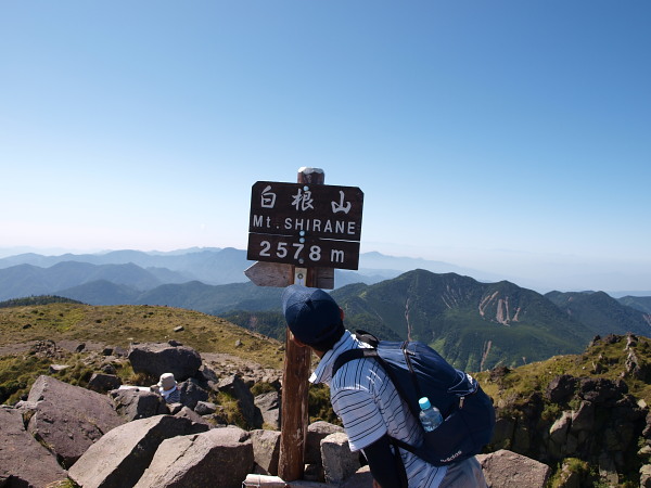 山頂は360度の大パノラマですが、登山者が次々と来るので場所を移動。